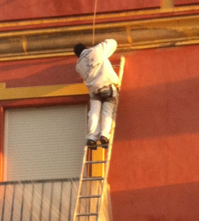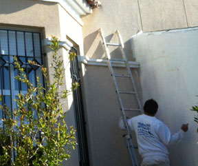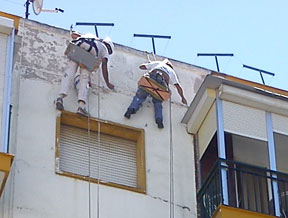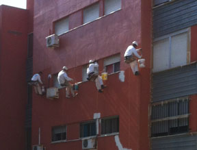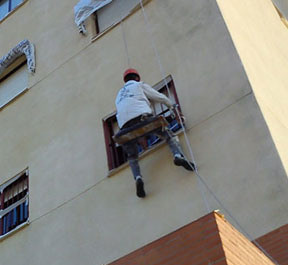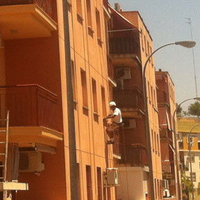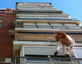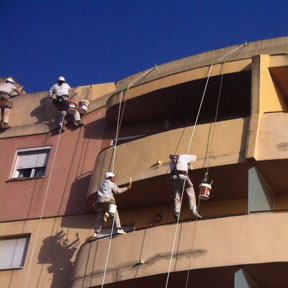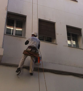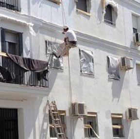 Rehabilitación de la fachada, saneamiento y reparación de las fisuras, tratamiento de fijación y posterior pintado.