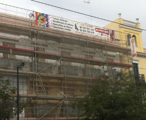 Rehabilitación de la fachada completa, estuco a la cal y limpieza de la piedra caliza.